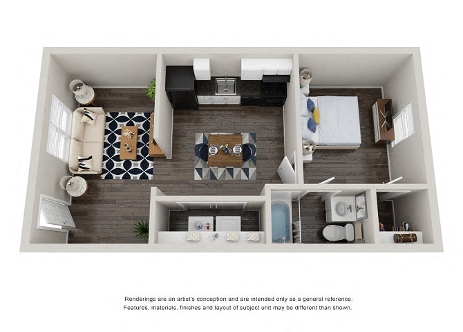 1 Dormitorio, 1 Baño, 625 pies²Disponible AhoraGalería del Modelo