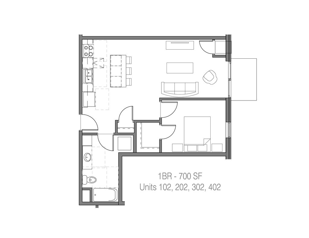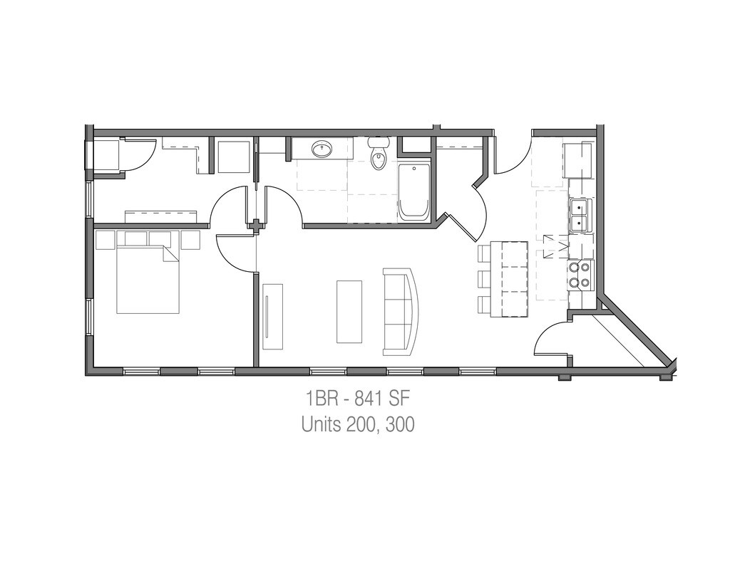 1 Dormitorio, 1 Baño, 534 pies²Galería del Modelo