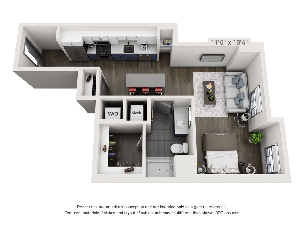 Estudio, 1 Baño, 658 pies²Galería del Modelo