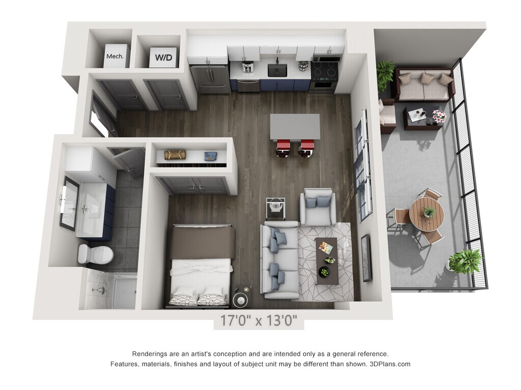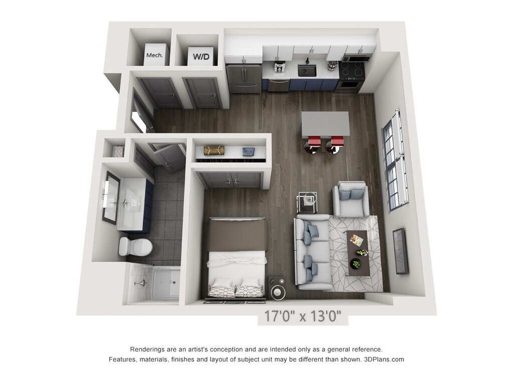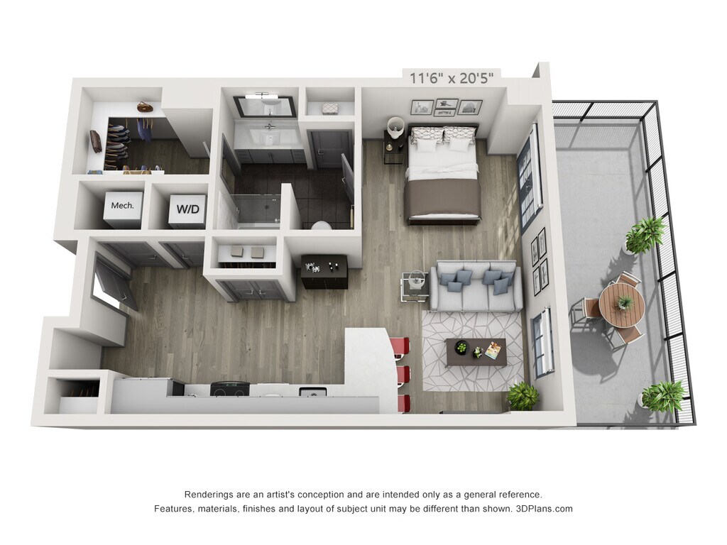 Estudio, 1 Baño, 717 pies²Disponible AhoraGalería del Modelo