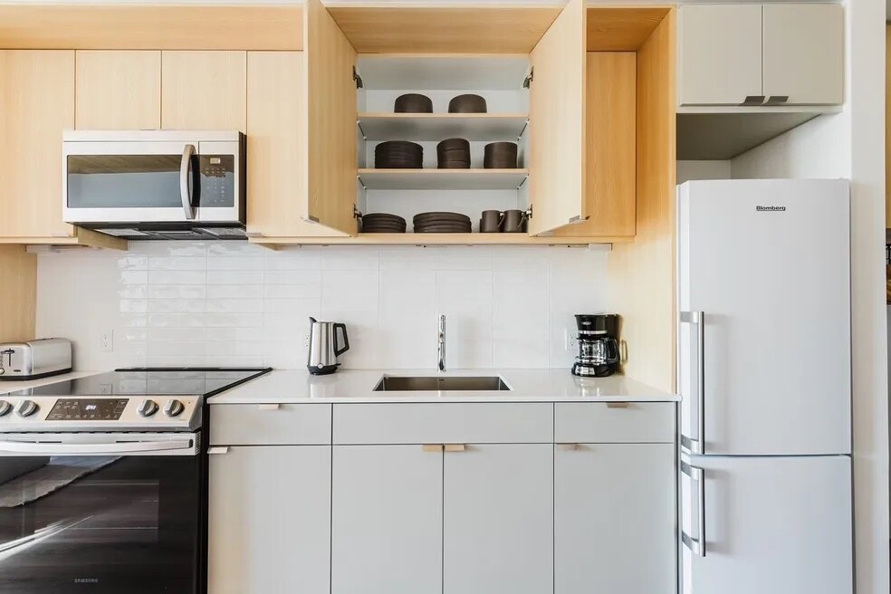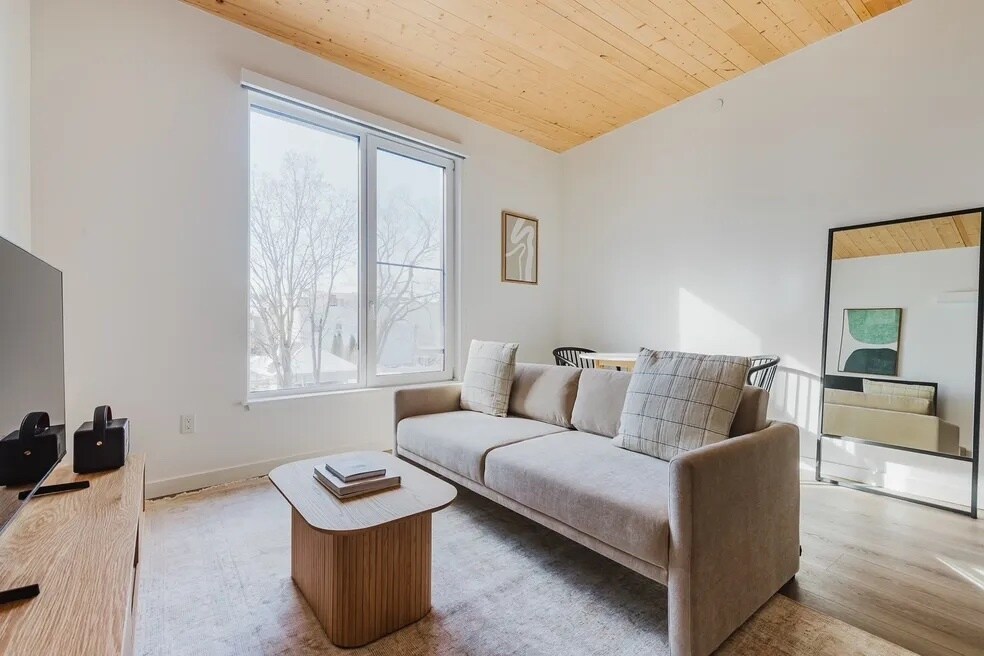 August 9, 2025Brand new, bright and spacious feeling. Wonderful kitchen, great bathroom and exterior windows. I now really like spending time at home, and I am cooking much more than before, because it is just a really nice space to be in. The rent is good value for what you get. In unit laundry is super convenient. Building is very nice too, though there are still a few things getting sorted out since it is just getting going. I like the neighborhood better than I thought I would- lots of restaurants to try ...and a tasty French style pastry shop next door. The building is super energy efficient, which is cool. The heat pump hvac is effective, quiet, comfortable, and efficient. Downsides of efficiency are an electric stove (I like gas) and a very low power combined washer/dryer so it takes a long time to do a load. But I put one in when I go to work and it is done and dry by the time I get home, so it’s ok for me.Leer MásReseña de Apartments.com