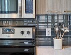 - Refrigerador, microondas, lavavajillas y cocina de acero inoxidable
