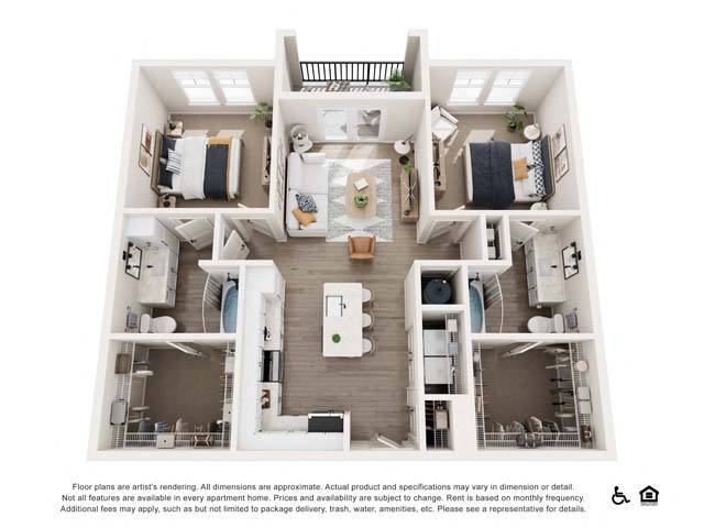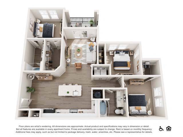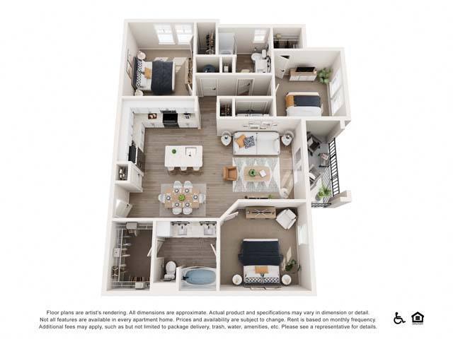 Modelo de apartamento: C2Desde $2,2853 Dormitorios, 2 Baños, 1287 sq ftDisponible AhoraLos planos son representaciones artísticas. Todas las dimensiones son aproximadas. El producto y las especificaciones reales pueden variar en tamaño o detalle. No todas las características están disponibles en cada vivienda en alquiler. Por favor, consulta con un representante para obtener más detalles.