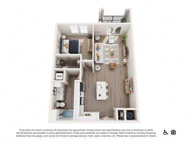 Modelo de apartamento: A1Desde $1,7801 Dormitorio, 1 Baño, 768 sq ftDisponible AhoraLos planos son representaciones artísticas. Todas las dimensiones son aproximadas. El producto y las especificaciones reales pueden variar en tamaño o detalle. No todas las características están disponibles en cada vivienda en alquiler. Por favor, consulta con un representante para obtener más detalles.