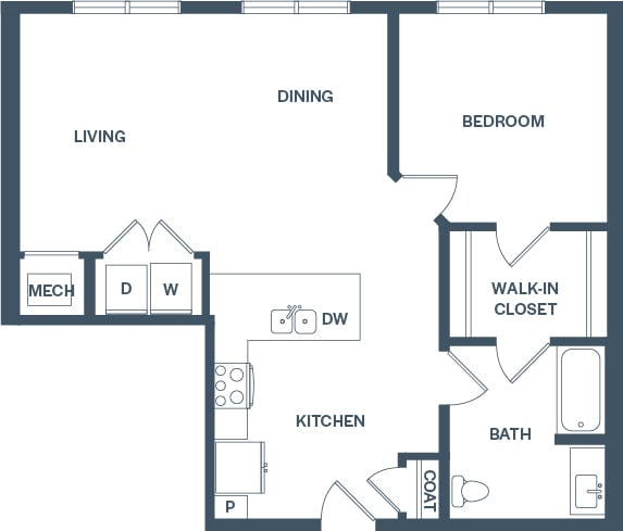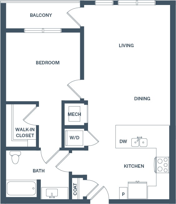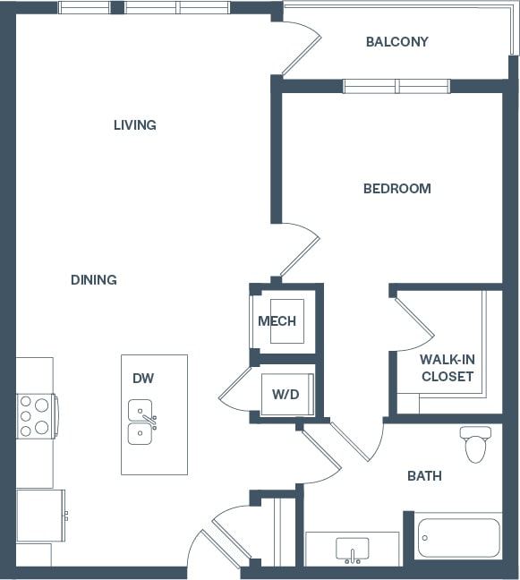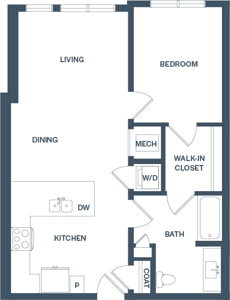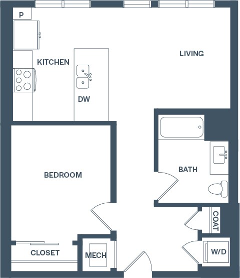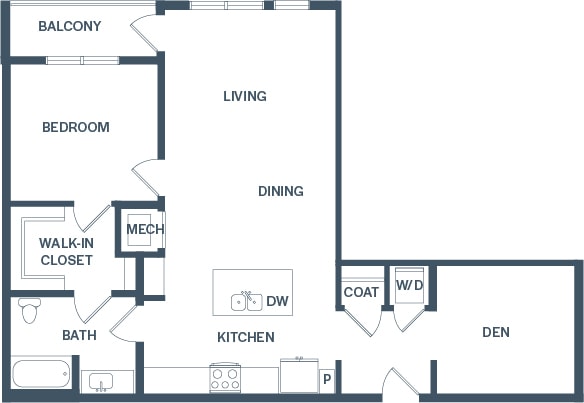 Modelo de apartamento: A01$2,6851 Dormitorio, 1 Baño, 630 sq ftDisponible February 23, 2026![]()