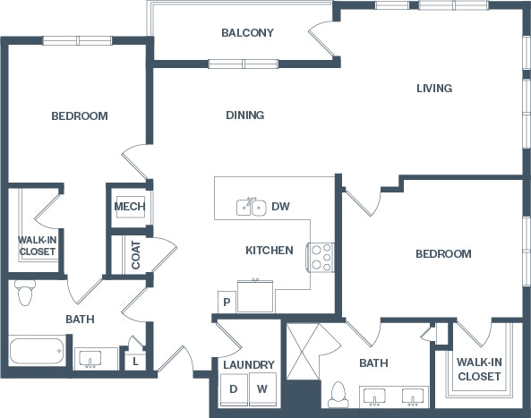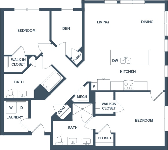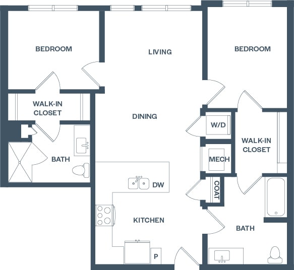 Modelo de apartamento: B05Desde $4,4002 Dormitorios, 2 Baños, 1341 sq ftDisponible February 23, 2026![]()