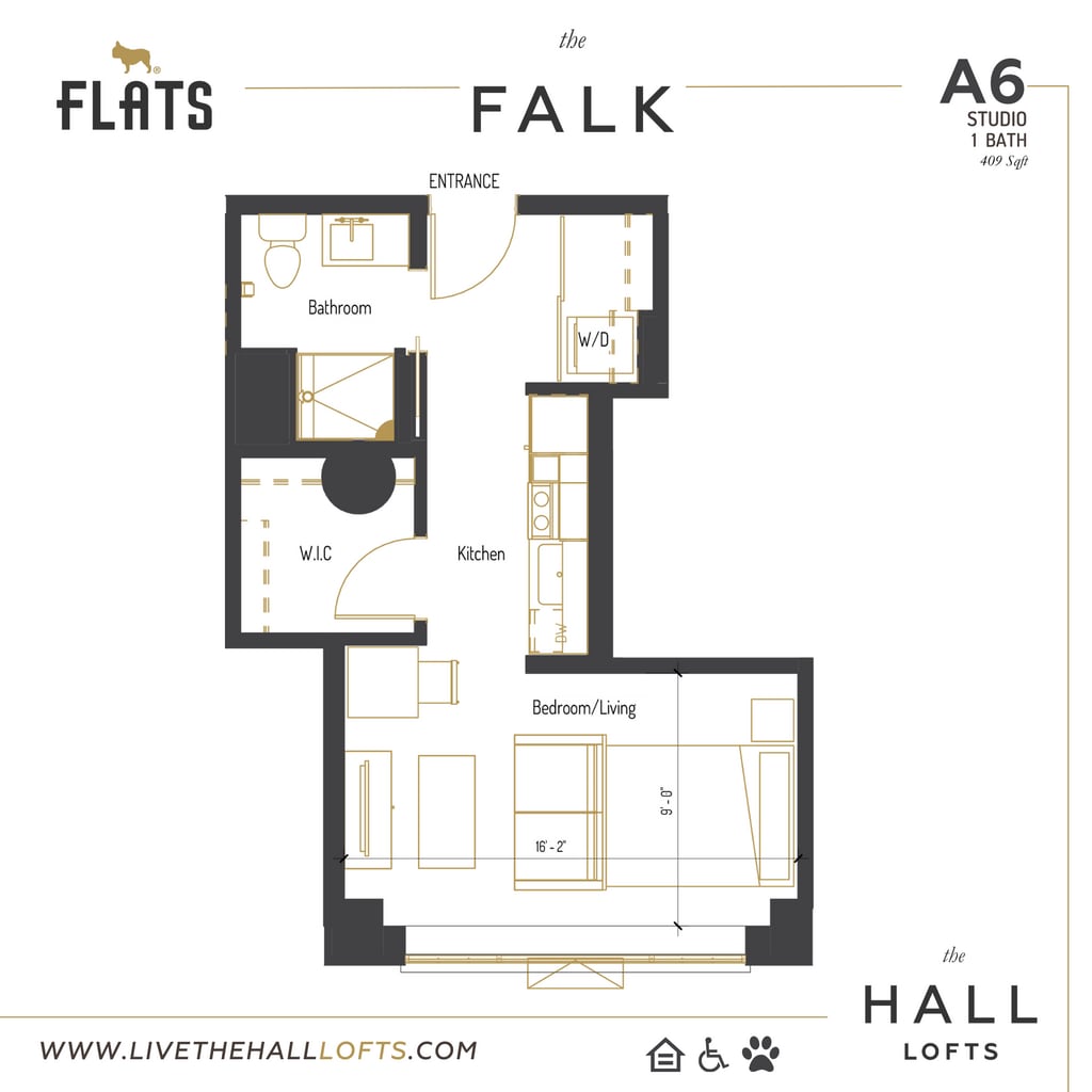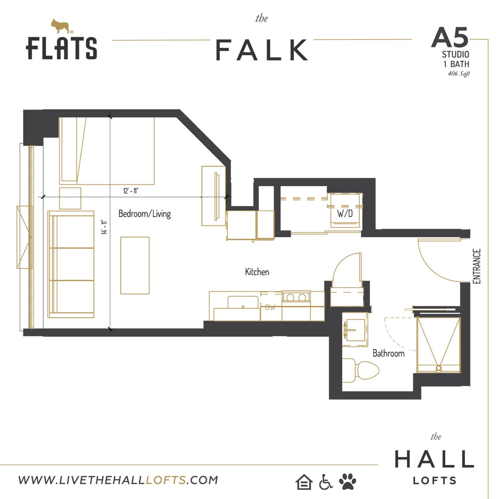 The Hall Lofts ofrece apartamentos de Estudio a 3 Dormitorios desde $1,390 con 406–1,415 pies cuadrados. Aquí está el precio actual y la disponibilidad: