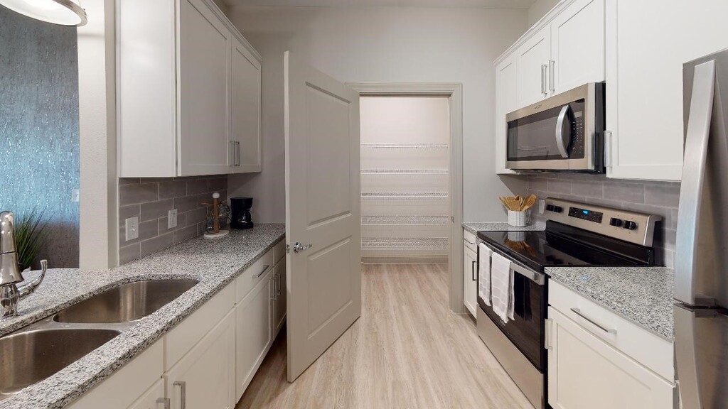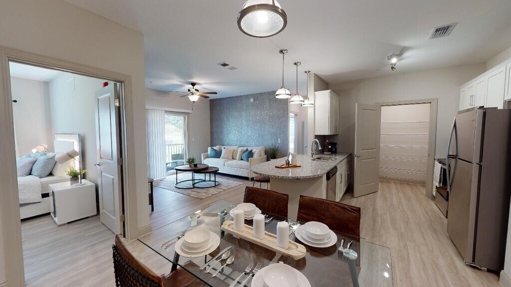 Disfruta de un lujoso estilo de vida como no hay en ningún otro lugar. Todos los días se sentirá como unas gratificantes vacaciones gracias a nuestros servicios estilo centro turístico, como la piscina, jacuzzi, pabellón al aire libre, gimnasio de última tecnología, cancha de deportes multiuso, y centro de juegos. Sin mencionar que tiene un parque para perros y un perro lavar exclusivamente para nuestros residentes peludo. Cuando es tiempo para llamarlo un día, tu hogar te da la bienvenida con electrodomésticos de acero inoxidable de bajo consumo, una cocina gourmet, un baño con doble tocador, gabinetes de alta calidad, una amplia galería, e iluminación dirigida, entre otros acabados atractivos. Comienza a explorar nuestra galería para mayor información. Los apartamentos cuentan con: Techos de nueve pies de altura Pisos de tablones de vinilo de lujo Baño de azulejos de cerámica con tocadores de doble tazón Encimeras de granito Gabinetes de alta calidad Electrodomésticos de acero inoxidable Lavadora y secadora Iluminación de trabajo Patio o balcón con mosquitero con puertas corredizas de vidrio Ahorro de energía sistema de calefacción y aire acondicionado Electrodomésticos e iluminación que incorporarán tecnología inteligente para el hogar ** ¡Complejo de lujo completamente NUEVO! ¡Pregúntanos cómo puedes ahorrar dinero en alquiler! **
