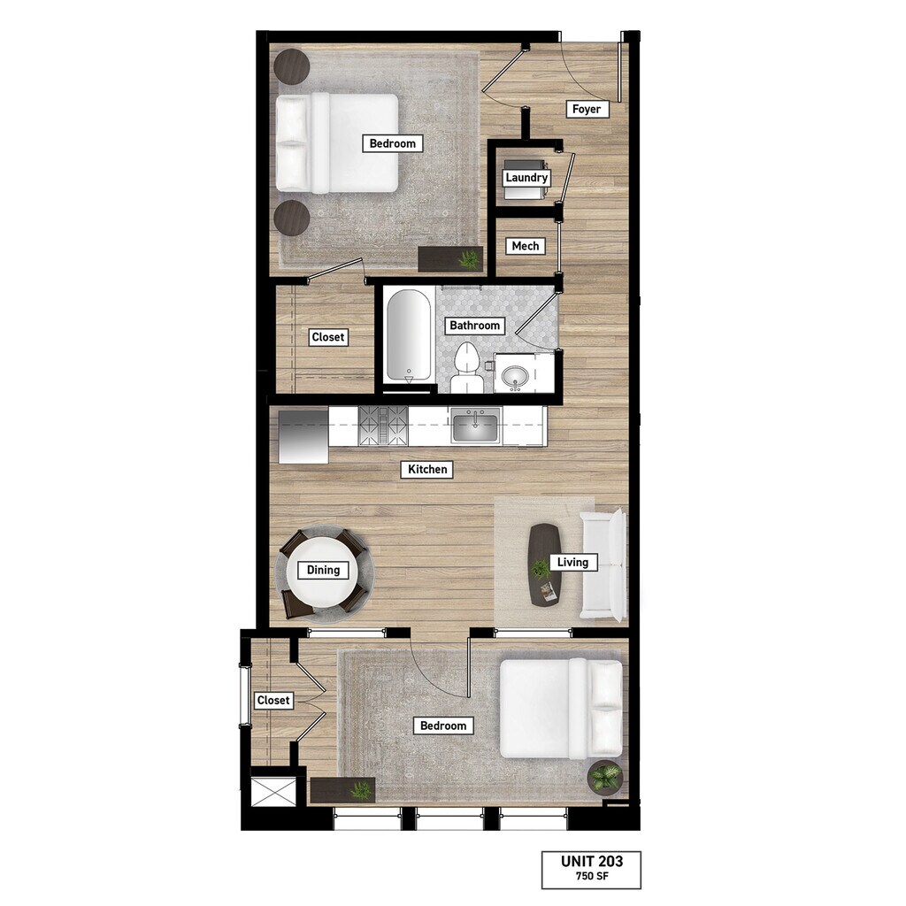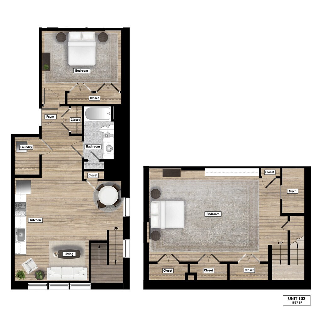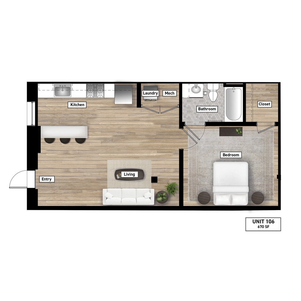 The Curley - Plano 4 Unidad de apartamento: 101Modelo de apartamento: The Curley$1,750Estudio, 1 Baño, 583 sq ftDisponible January 1, 2026The Bouldin