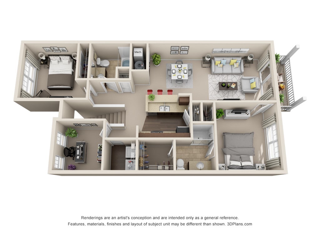2 Dormitorios, 2 Baños, 1232 pies²Galería del Modelo