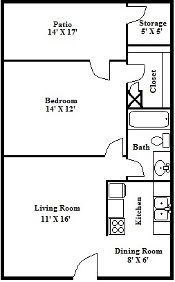 Modelo de apartamento: A1$1,2531 Dormitorio, 1 Baño, 539 sq ftNo Disponible![]()