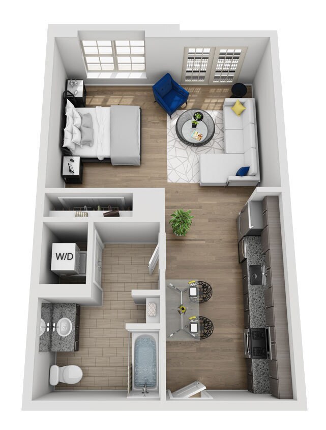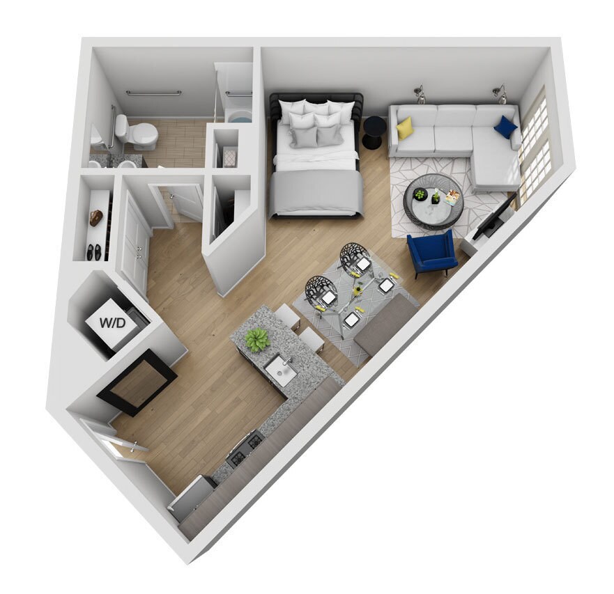 Estudio, 1 Baño, 635 pies²El más grandeEsta opción tiene las unidades más grandes para este modeloGalería del Modelo