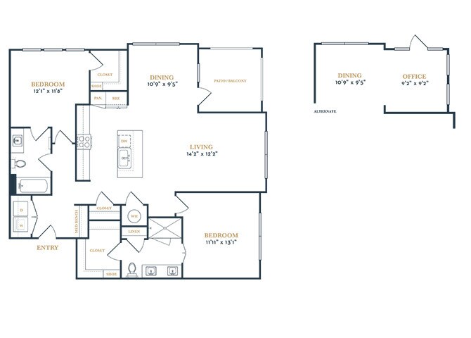 Modelo de apartamento: A2Desde $1,6711 Dormitorio, 1 Baño, 787-803 sq ftDisponible Ahora![]()
