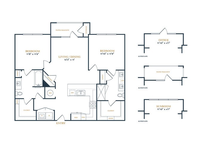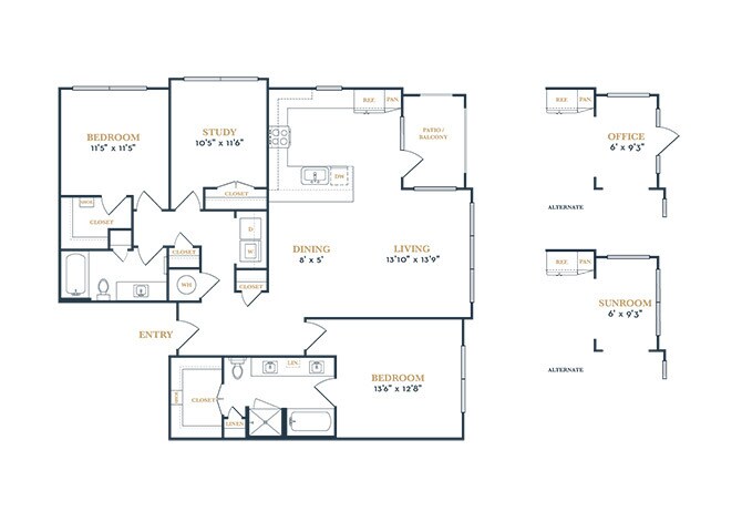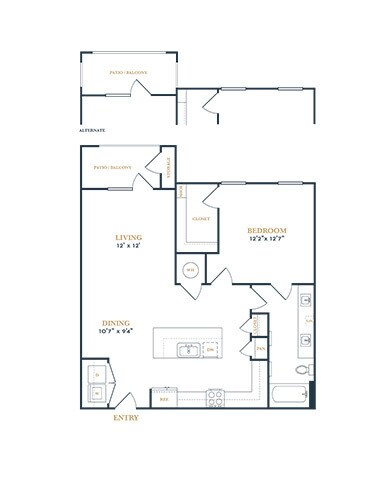 Modelo de apartamento: A3Desde $1,6561 Dormitorio, 1 Baño, 789 sq ftDisponible Ahora![]()