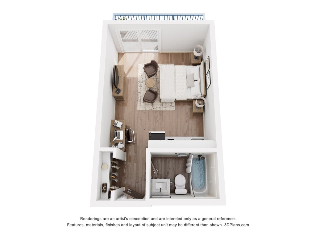 Estudio, 1 Baño, 307 pies²Disponible AhoraGalería del Modelo