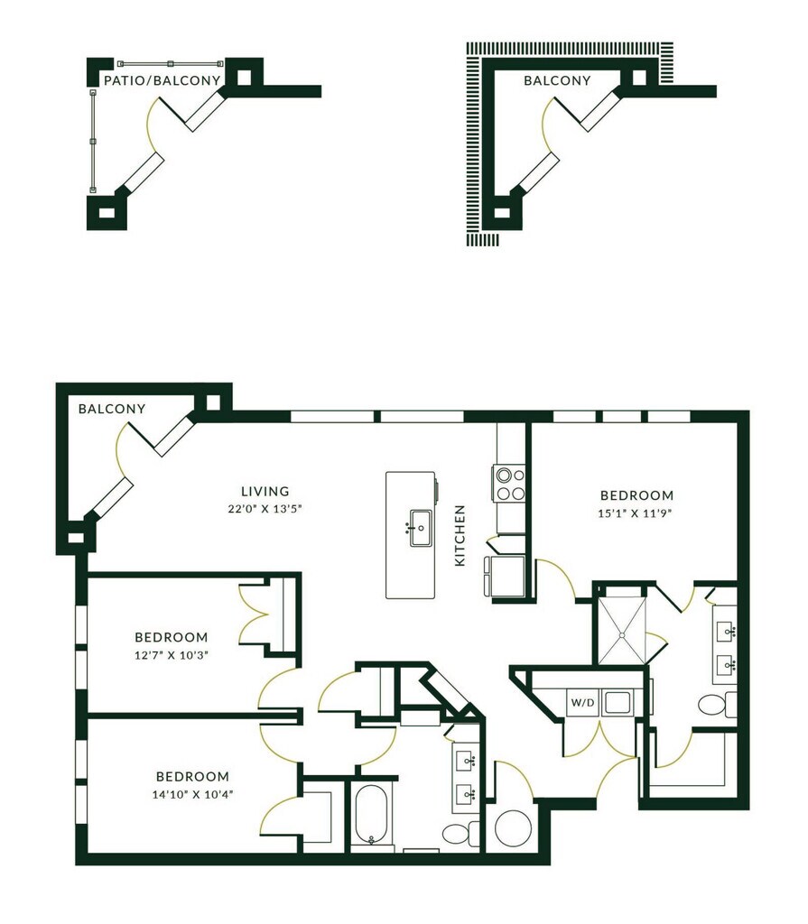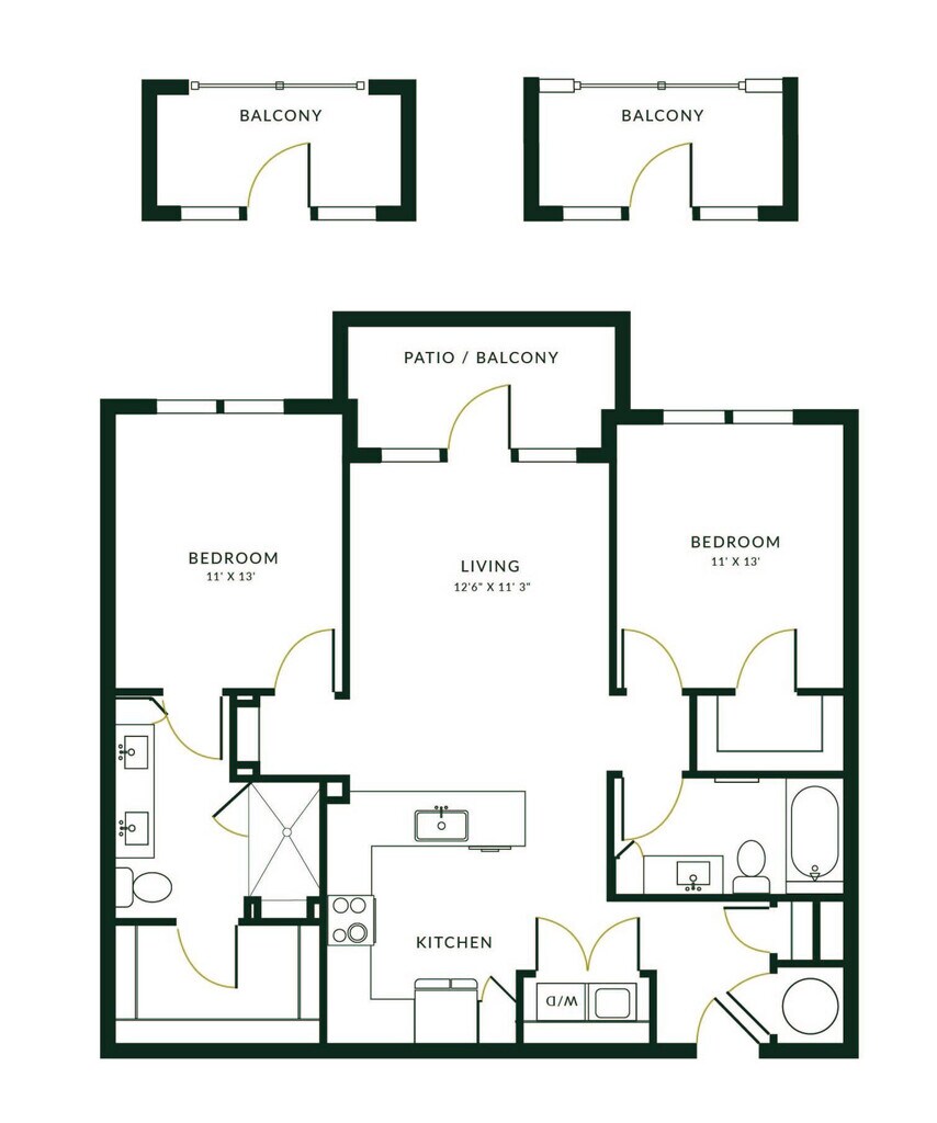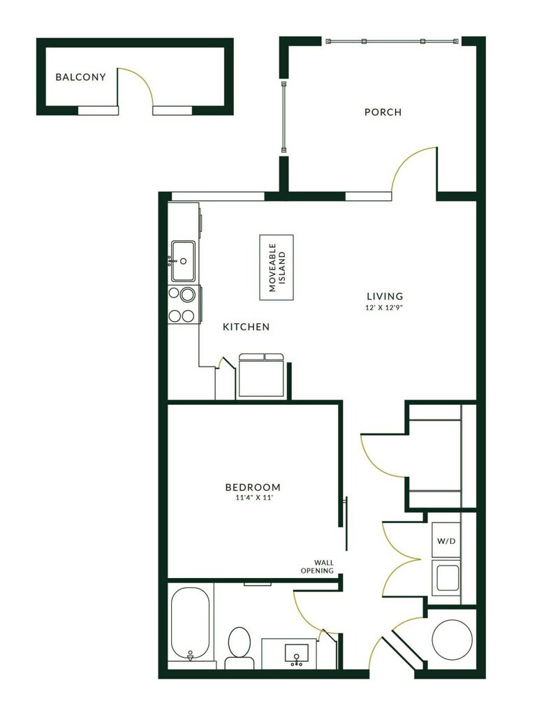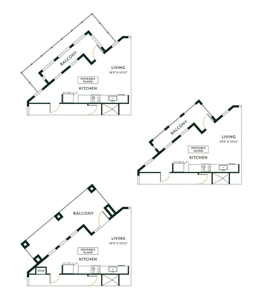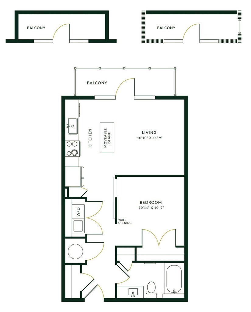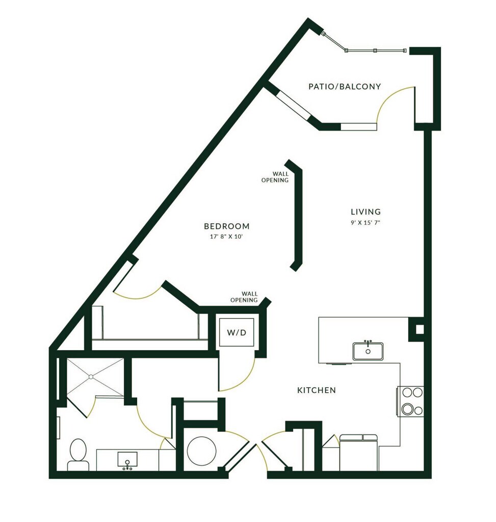 Estudio, 1 Baño, 633 pies²Disponible AhoraGalería del Modelo