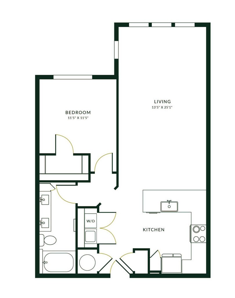 S1J - Plano 1 Unidad de apartamento: 625-120Modelo de apartamento: S1J$1,696Estudio, 1 Baño, 768 sq ftDisponible AhoraPlano: S1L