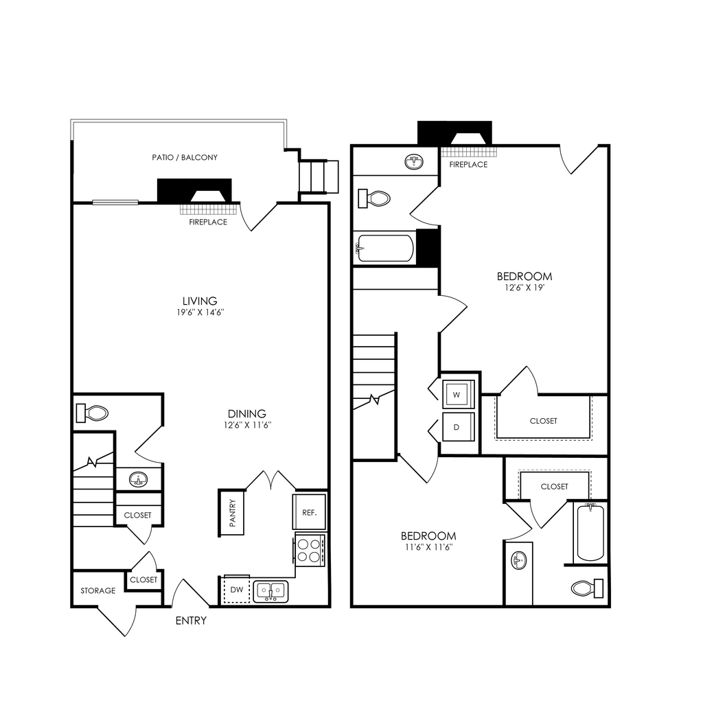 Modelo de apartamento: A4 TownhomeDesde $1,4901 Dormitorio, 1.5 Baños, 1078 sq ftDisponible Ahora![]()