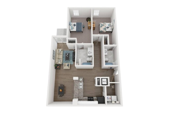 Modelo de apartamento: 2x2Desde $6952 Dormitorios, 2 Baños, 505 sq ftDisponible Ahora![]()