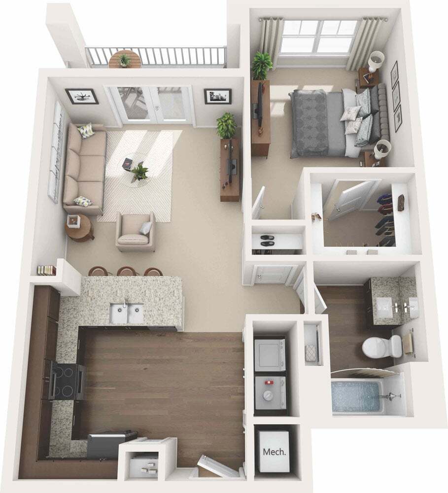 1 Dormitorio, 1 Baño, 801 pies²Disponible AhoraGalería del Modelo