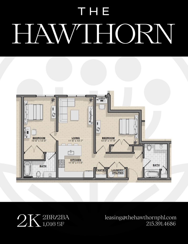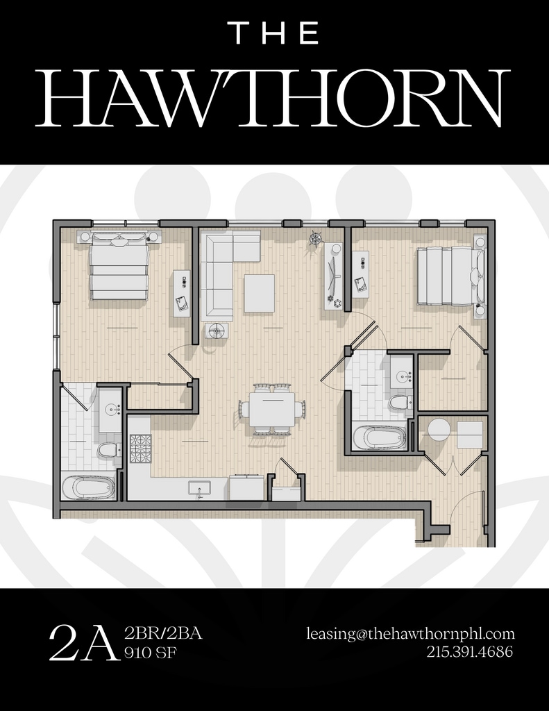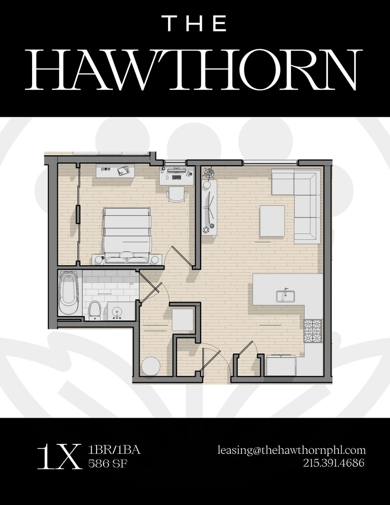 Hugging the tree line of the expansive Fairmount Park in Philadelphia's Wynnefield neighborhood, The Hawthorn is halfway between the Main Line and the city. Find one and two-bedroom apartment homes and a collection of state-of-the-art amenities including a juice bar and cafe, fitness center with yoga studio, and rooftop lounge with al fresco grilling.