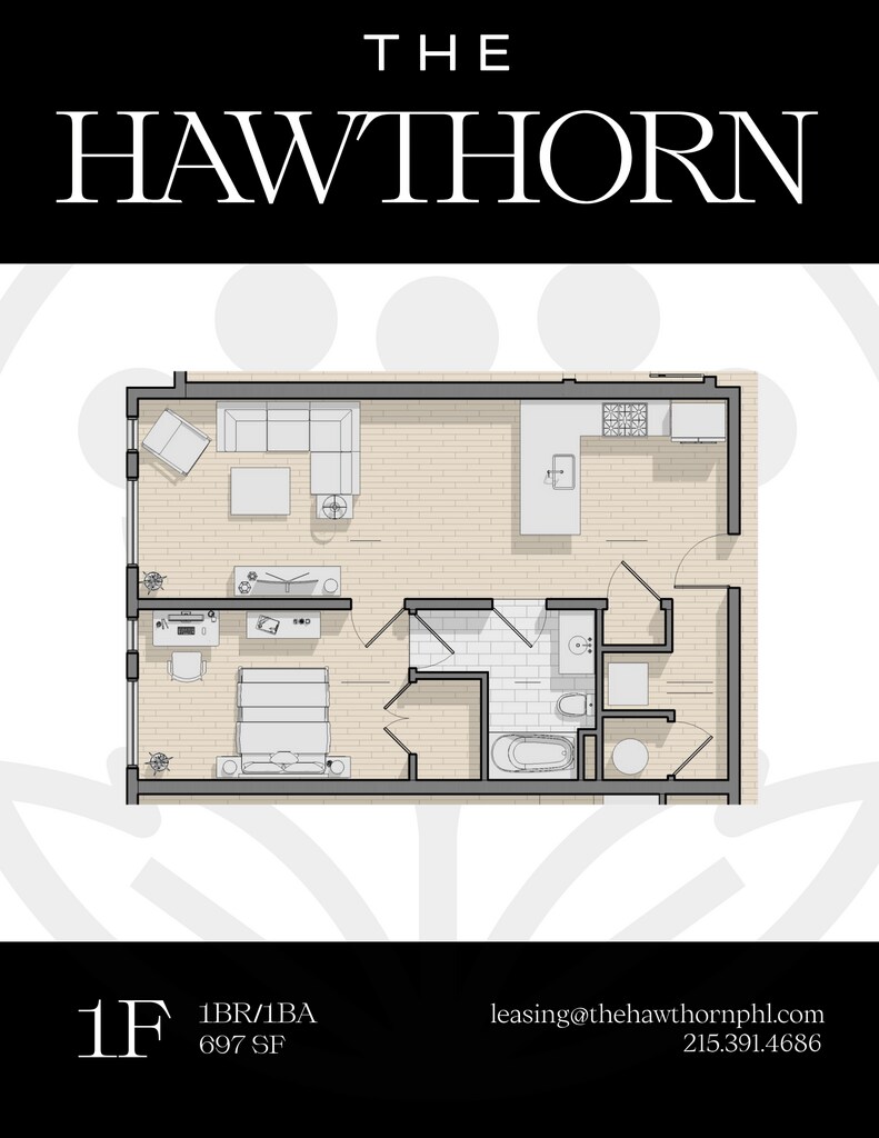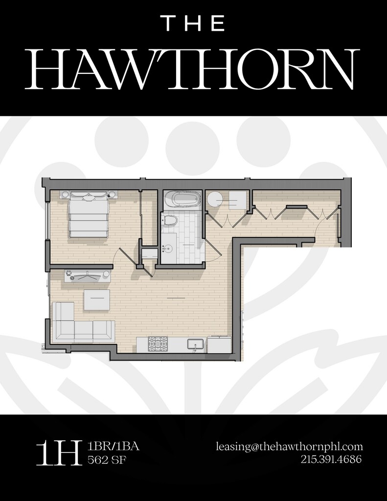Modelo de apartamento: 1H$1,7501 Dormitorio, 1 Baño, 562 sq ftDisponible Ahora![]()