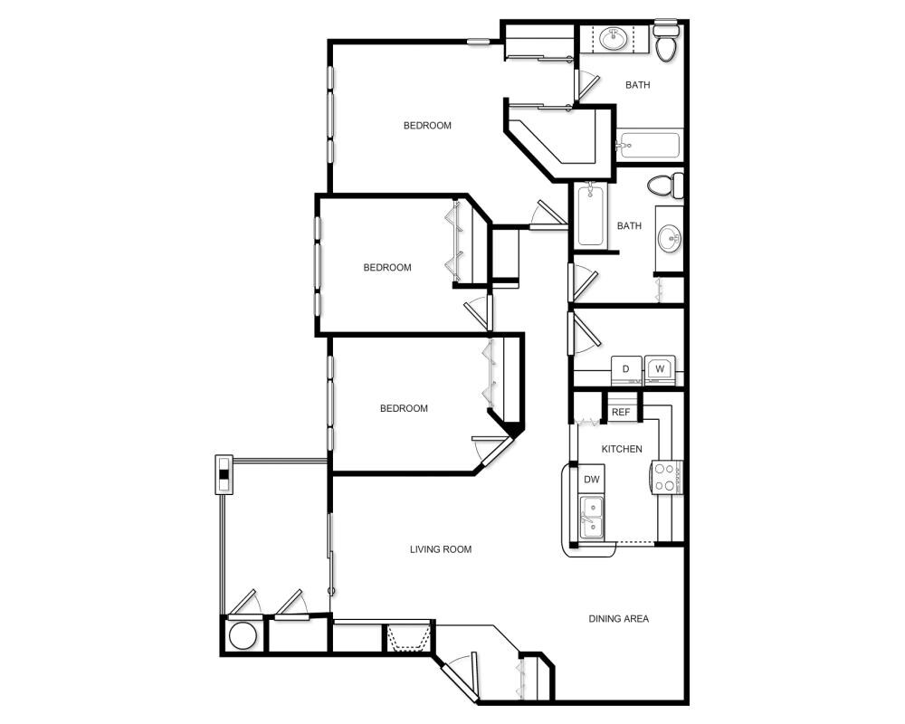 Modelo de apartamento: WinterhavenDesde $1,8521 Dormitorio, 1 Baño, 694 sq ftDisponible Ahora![]()