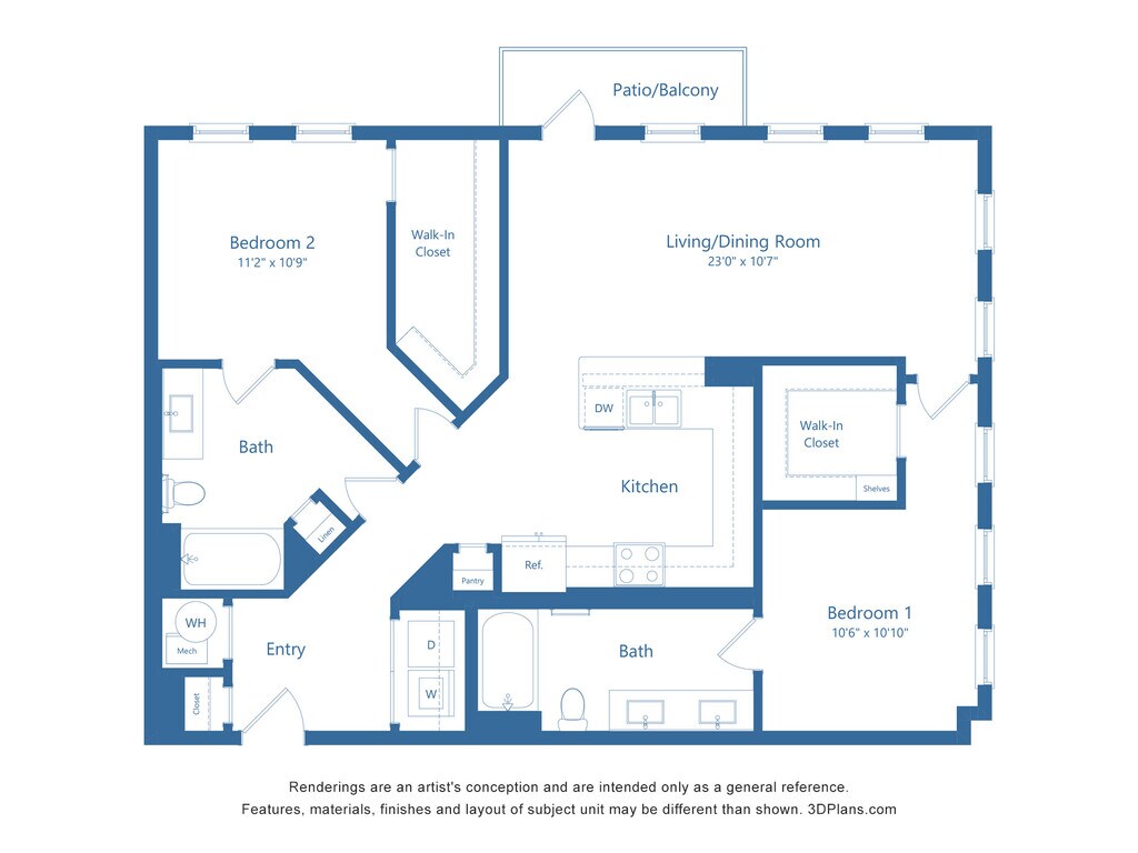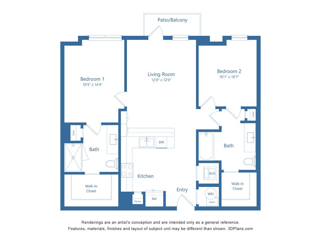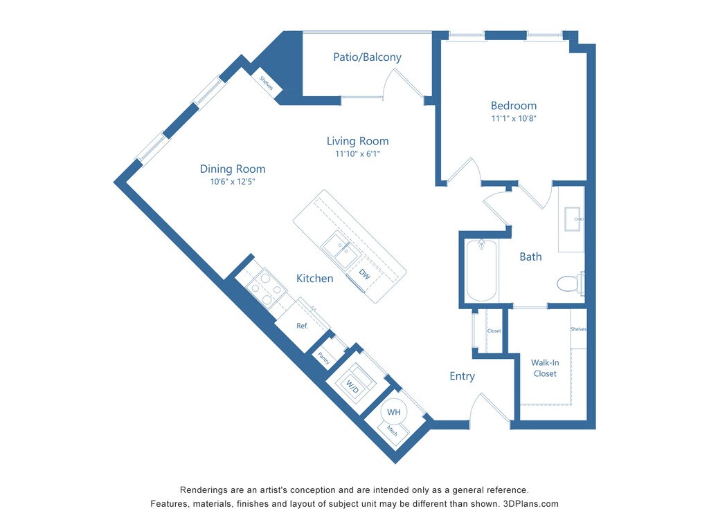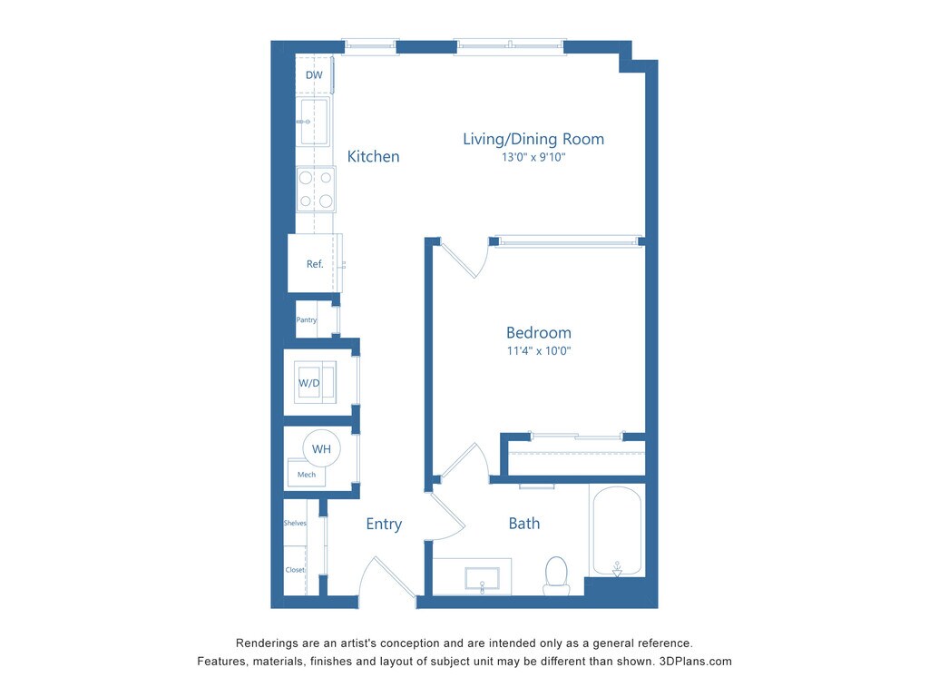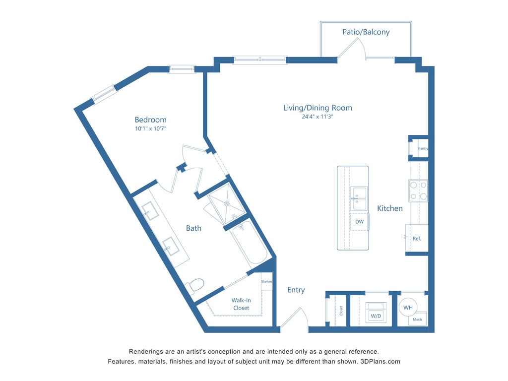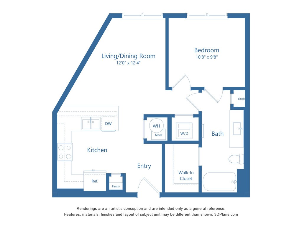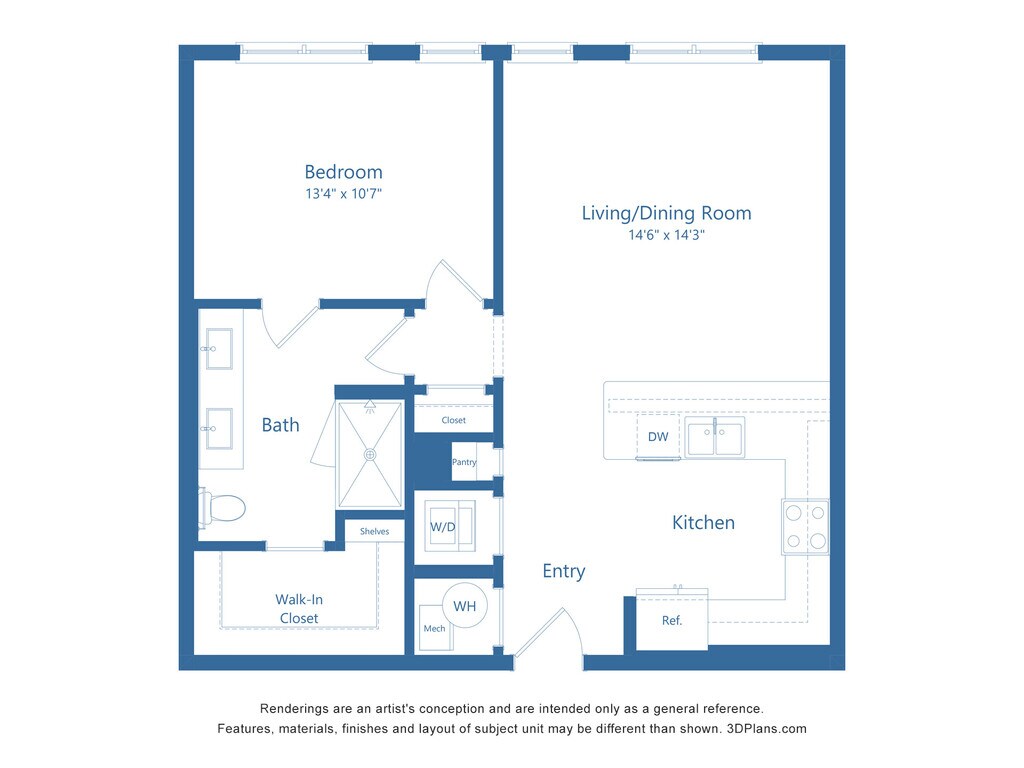 1 Dormitorio, 1 Baño, 634 pies²Disponible AhoraGalería del Modelo