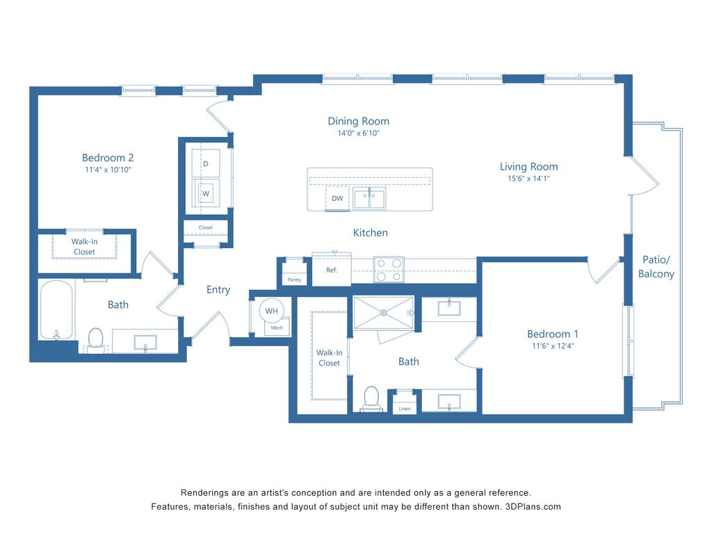Modelo de apartamento: A2 | 1 Bed | 1 BathDesde $1,6841 Dormitorio, 1 Baño, 634 sq ftDisponible Ahora![]()