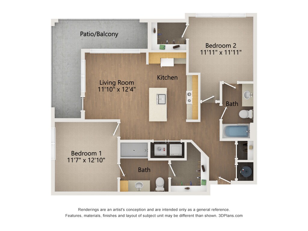 Modelo de apartamento: A1 ALT 2-60%Desde $9991 Dormitorio, 1 Baño, 726 sq ftDisponible Ahora![]()
