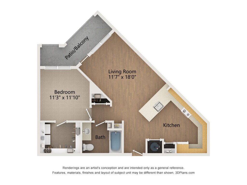 Modelo de apartamento: A1 ALT-60%Desde $9991 Dormitorio, 1 Baño, 702 sq ftDisponible Ahora![]()
