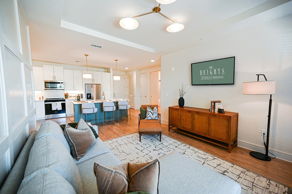 Welcome to The Heights at Holly Springs, where luxurious resort-style living awaits you in the heart of Holly Springs. Our brand-new apartment community offers a modern and upscale living experience developed by Worthing, one of Atlanta's premiere multifamily developers. Boasting luxury vinyl plank flooring, bathrooms with quartz vanities, framed mirrors, and garden style tubs and showers with large format, glazed porcelain tile surrounds. The Heights at Holly Springs is designed with you in mind. From our gourmet, chef-inspired kitchens with sleek, energy-efficient, stainless steel appliances and kitchen islands, to our expansive pool with grills & cabana, every detail has been carefully crafted for your comfort and enjoyment.
