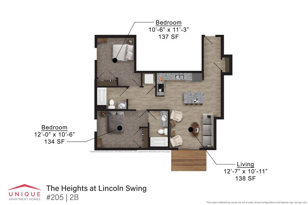 Este complejo está convenientemente ubicado a la salida de Lincoln Way y Dakota del Sur. Cerca de muchos restaurantes y tiendas en West Ames. Hay una parada Cy-Ride a solo una poca distancia a pie de la propiedad, frente al servicio de gas Hy-Vee. Los apartamentos tienen acabados lujosos, encimeras de granito, gabinetes color café, electrodomésticos de acero inoxidable y otros toques de diseñador. Todos los apartamentos del tercer piso tienen diseños estilo loft de dos pisos. Esta propiedad admite mascotas en todos los edificios y pisos. En Lincoln Swing, cada apartamento cuenta con un lavaplatos, un horno de microondas y lavadora/secadora en el apartamento. Todos los edificios tienen entrada segura y cámaras en todos los pasillos, escaleras y exteriores de los edificios.