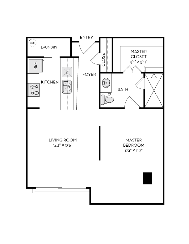 FA9R - Floorplan 1 Apartment Unit: F-506Apartment Model: FA9R$2,1581 Bedroom, 1 Bath, 920 sq ftAvailable NowFloorplan FA9