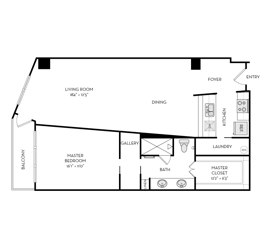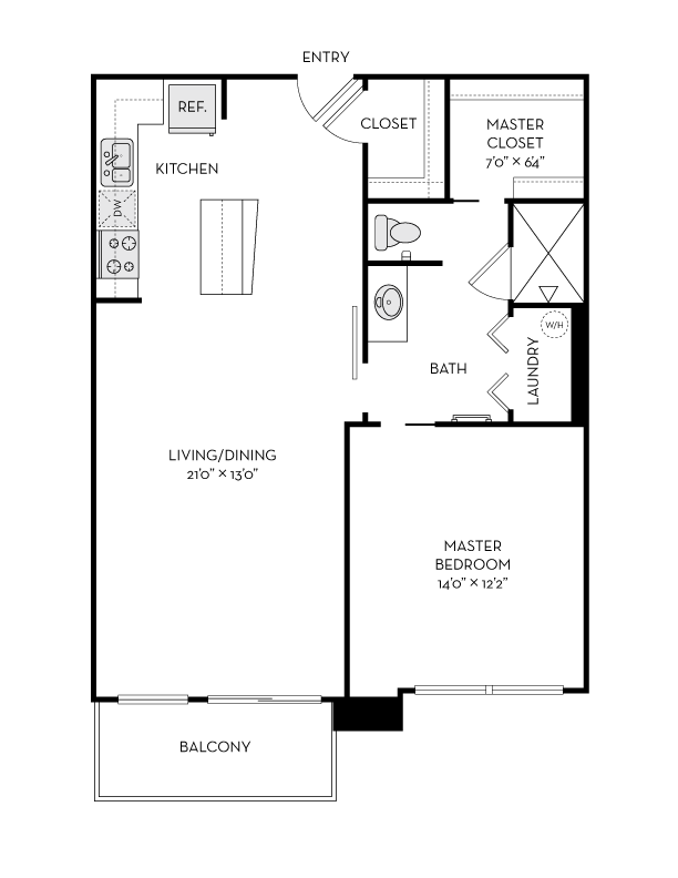 FA2R - Floorplan 1 Apartment Unit: F-511Apartment Model: FA2R$1,9201 Bedroom, 1 Bath, 716 sq ftAvailable NowFloorplan LA2