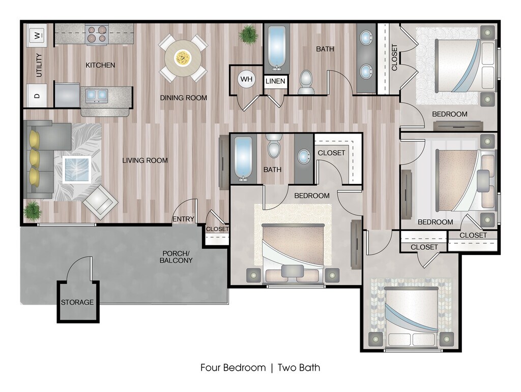 Modelo de apartamento: 4 Bedroom / 2 BathroomLlame para Precios4 Dormitorios, 2 Baños, 1333 sq ftNo Disponible![]()