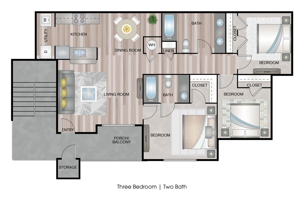 Modelo de apartamento: 3 Bedroom / 2 BathroomDesde $1,3903 Dormitorios, 2 Baños, 1085 sq ftDisponible AhoraPlanosFotos![]()