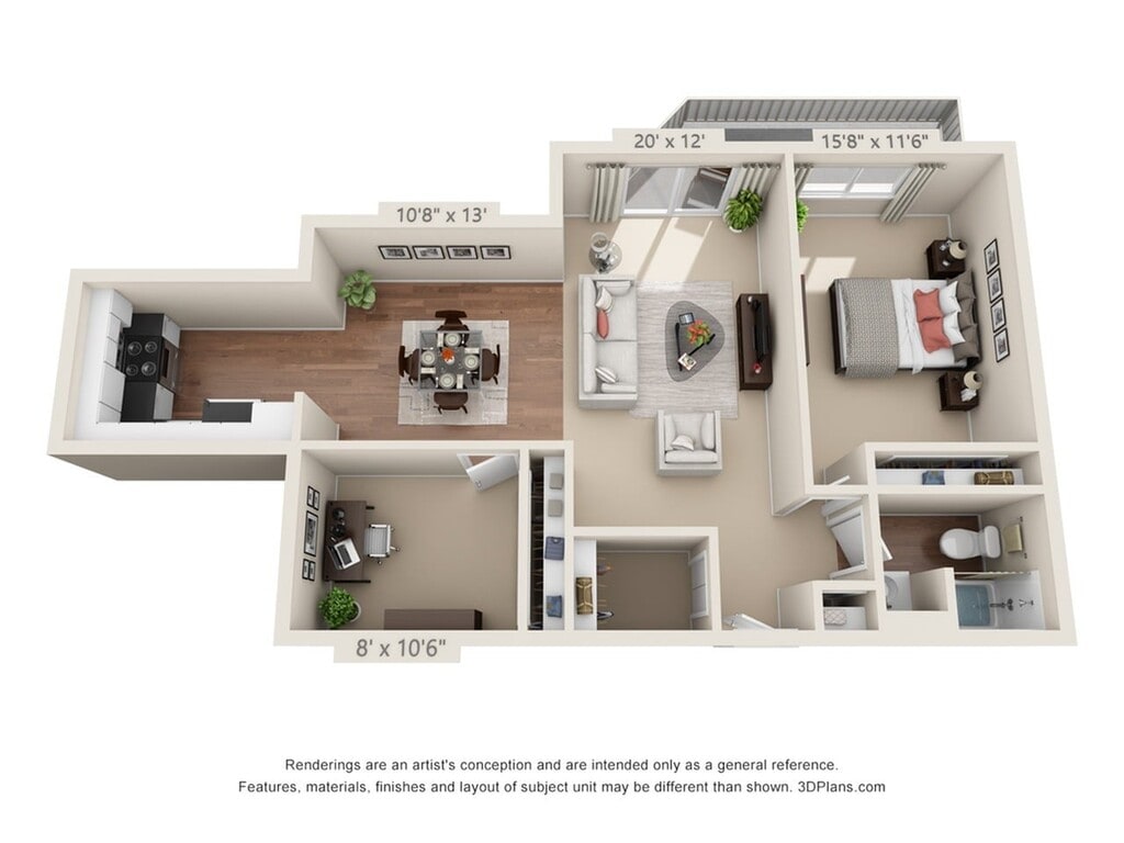 Modelo de apartamento: 1-Bedroom 1-Bathroom | 671 sqftDesde $1,5501 Dormitorio, 1 Baño, 671 sq ftDisponible AhoraPlanos3D ToursLos planos son representaciones artísticas. Todas las dimensiones son aproximadas. El producto y las especificaciones reales pueden variar en tamaño o detalle. No todas las características están disponibles en cada vivienda en alquiler. Por favor, consulta con un representante para obtener más detalles.