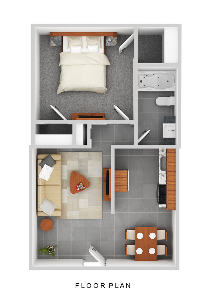 1 Dormitorio, 1 Baño, 600 pies²Disponible AhoraGalería del Modelo