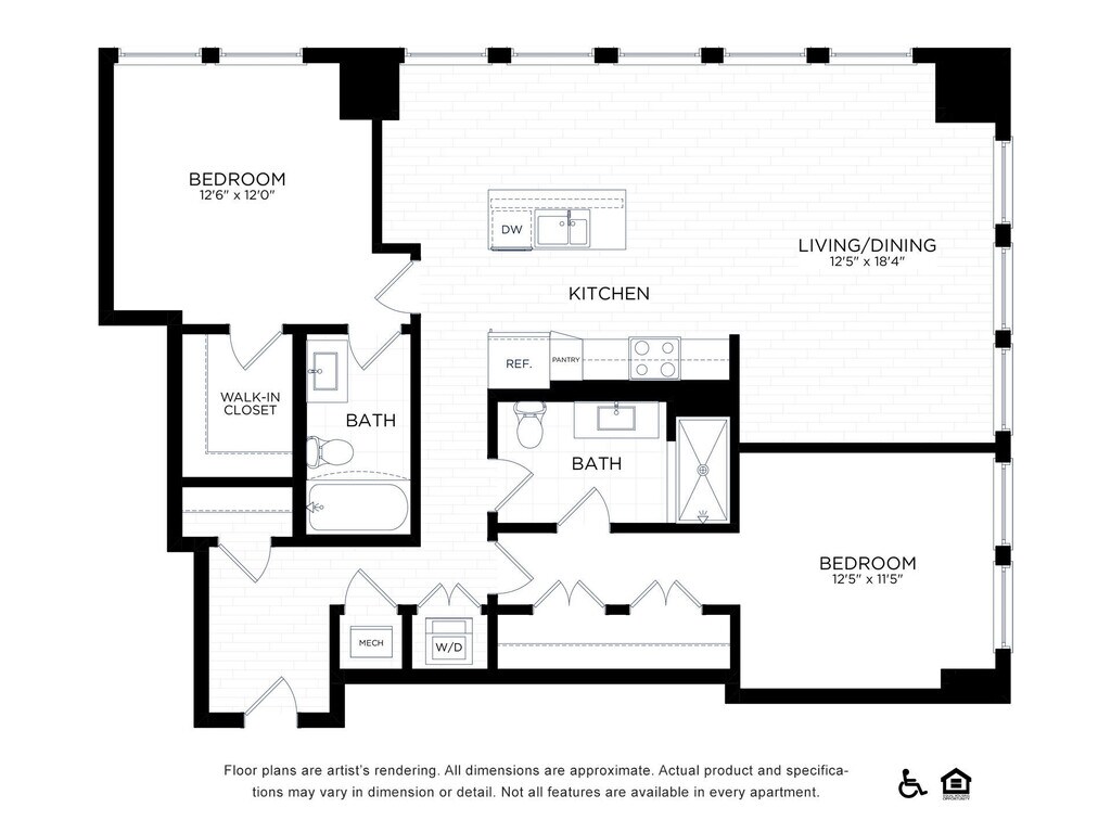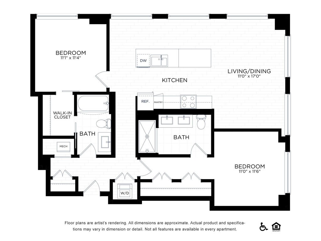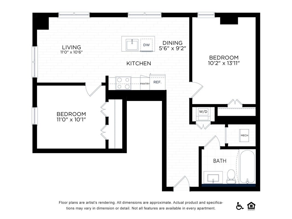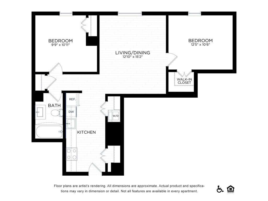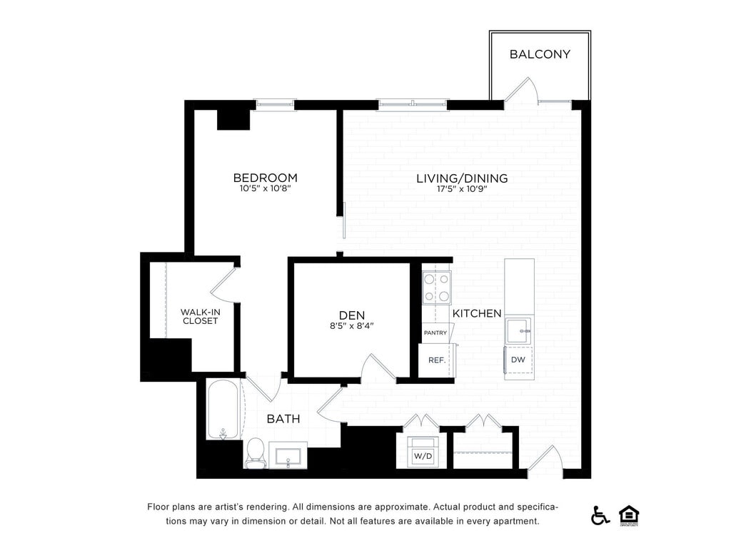 1 Dormitorio, 1 Baño, 627 pies²Disponible AhoraGalería del Modelo