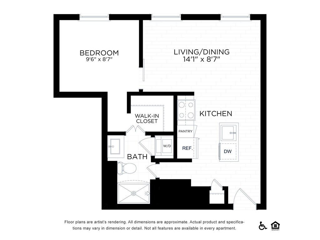 Estudio, 1 Baño, 561 pies²Galería del Modelo