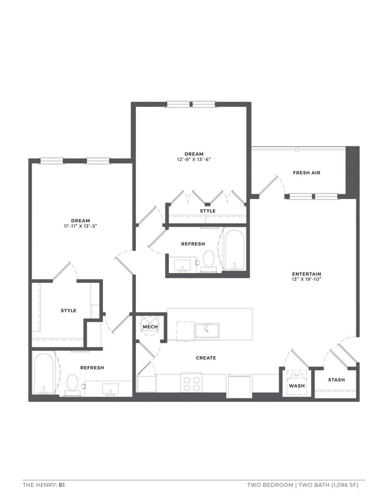 1 Dormitorio, 1 Baño, 739-741 pies²Disponible AhoraGalería del Modelo
