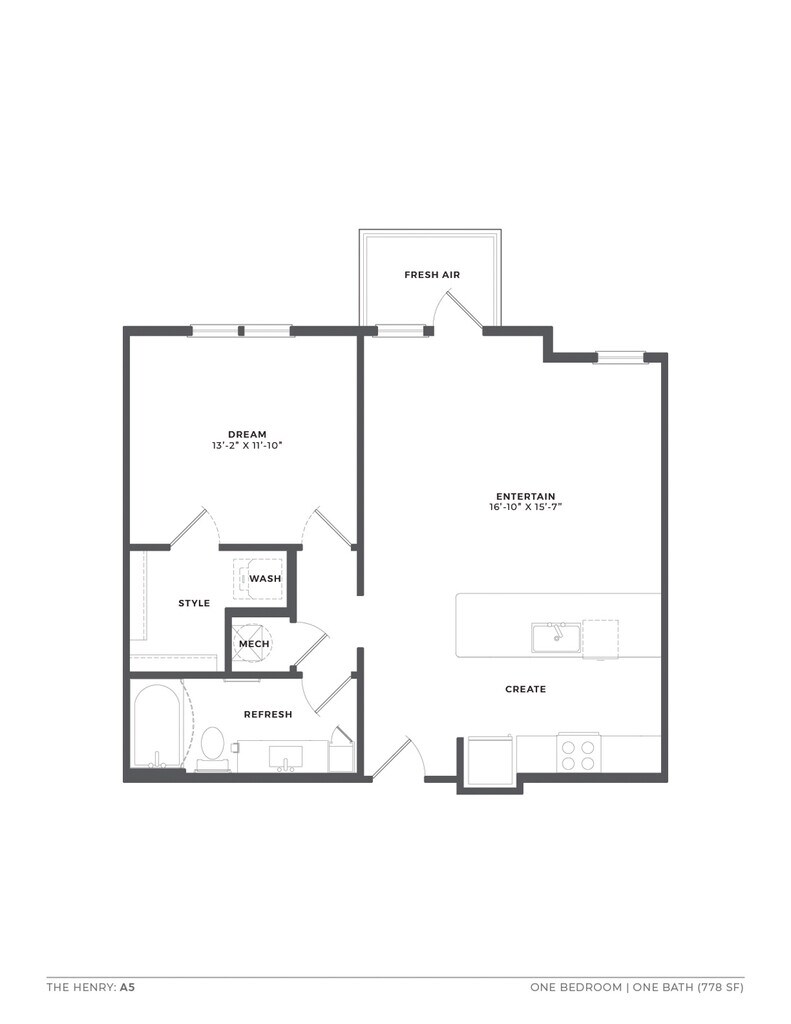 1 Dormitorio, 1 Baño, 778 pies²Disponible AhoraEl más grandeEsta opción tiene las unidades más grandes para este modeloGalería del Modelo