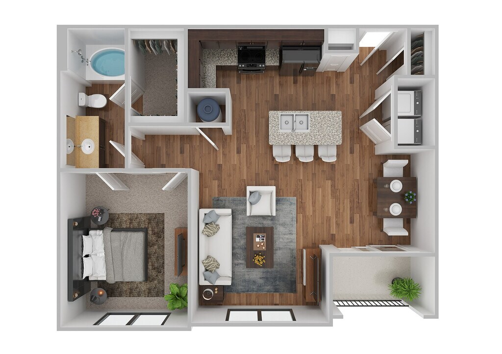1 Dormitorio, 1 Baño, 634 pies²Disponible AhoraGalería del Modelo