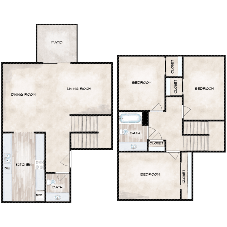 2 Dormitorios, 1.5 Baños, 1112 pies²Disponible AhoraEl más grandeEsta opción tiene las unidades más grandes para este modeloGalería del Modelo