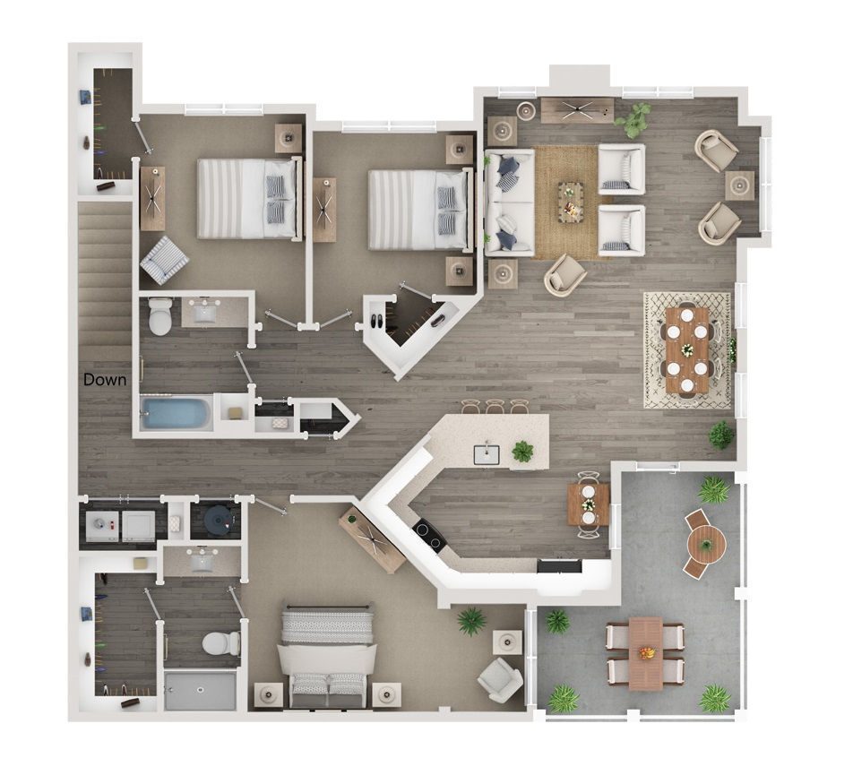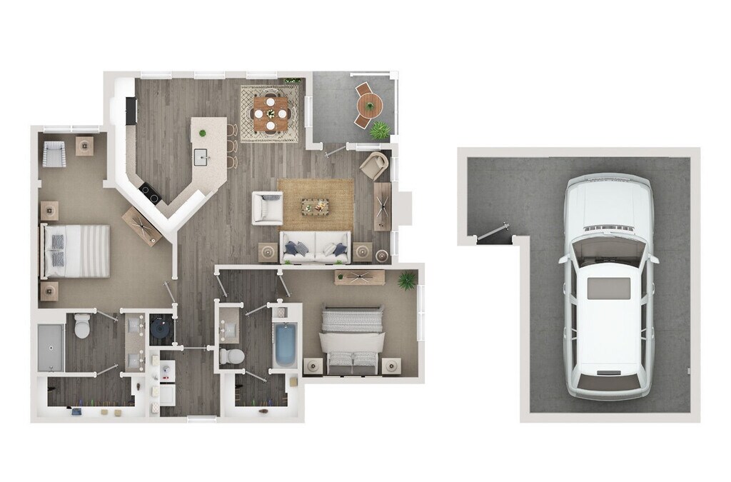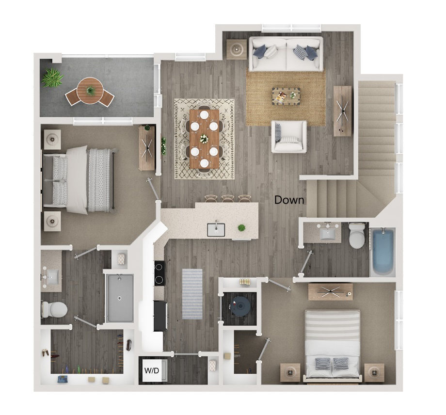 1 Dormitorio, 1 Baño, 761 pies²Disponible AhoraGalería del Modelo