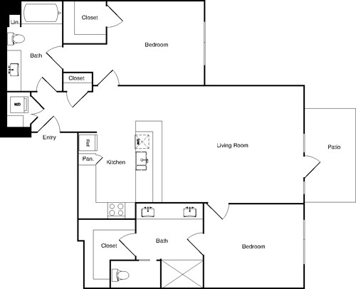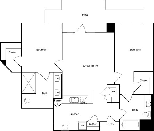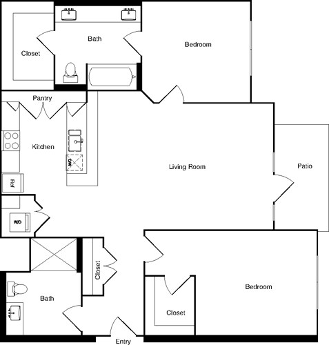 Modelo de apartamento: ALlame para Precios1 Dormitorio, 1 Baño, 725 sq ftNo Disponible![]()