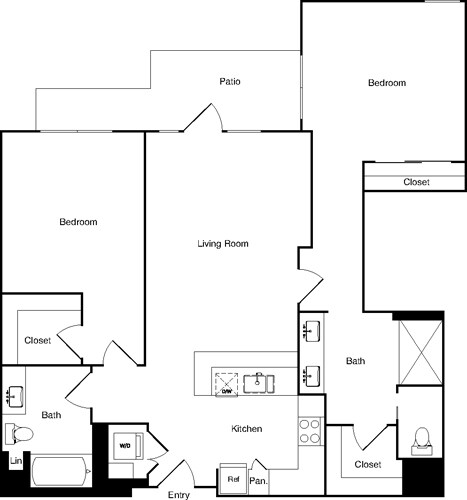 Modelo de apartamento: A2Llame para Precios1 Dormitorio, 1 Baño, 733 sq ftNo Disponible![]()