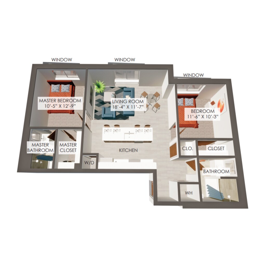 Modelo de apartamento: 1B$1,5991 Dormitorio, 1 Baño, 545 sq ftDisponible February 20, 2026![]()