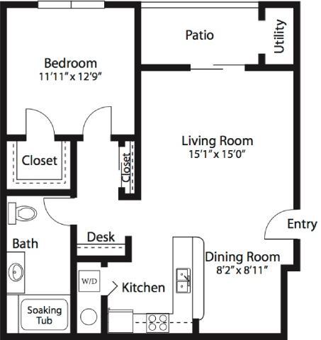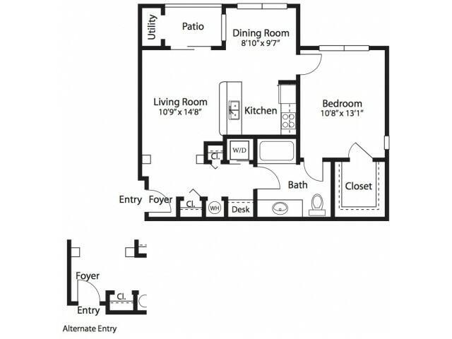 Modelo de apartamento: Waterford w/GarageLlame para Precios1 Dormitorio, 1 Baño, 799 sq ftNo Disponible![]()